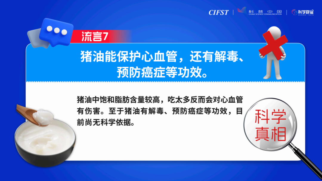 近日,由中國食品科學技術學會主辦的“2023年食品安全與健康熱點科學解讀媒體溝通會”在北京舉辦。會上,中國食品科學技術學會聯合中國科協科普中國、科學辟謠平臺共同發布了“2023年食品安全與健康流言榜”。