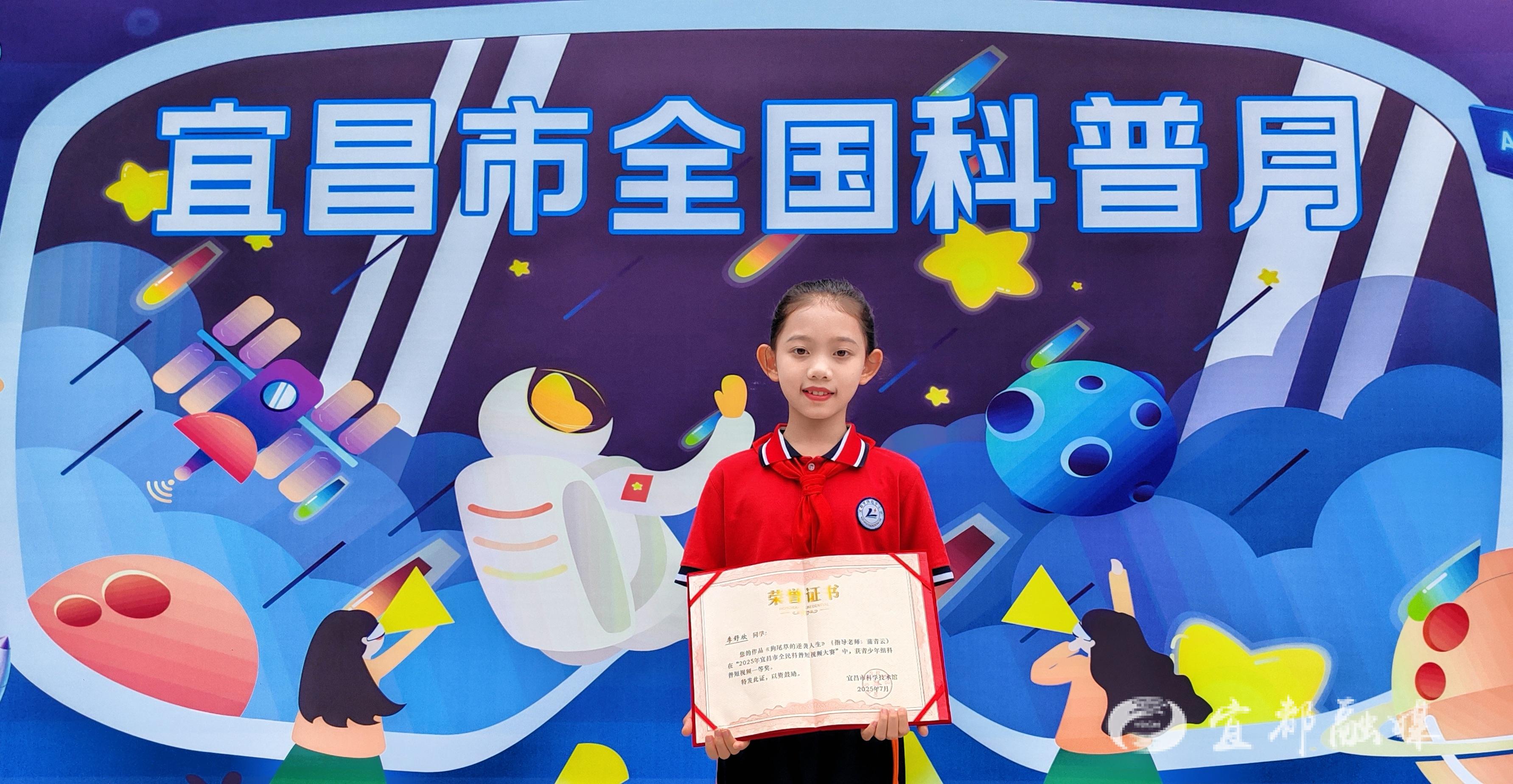 宜都融媒訊(通訊員 蒲青云)近日,2025年湖北省科普短視頻大賽評選結果正式揭曉,宜都市陸遜中小學學子憑借創新科普創作實力嶄露頭角。該校李舒欣同學的作品《狗尾草的逆襲人生》從全省眾多參賽作品中脫穎而出,不僅摘得青少年組市級一等獎,更成功入圍省級賽事優秀作品行列,成為宜昌市校園科普教育的亮眼成果。